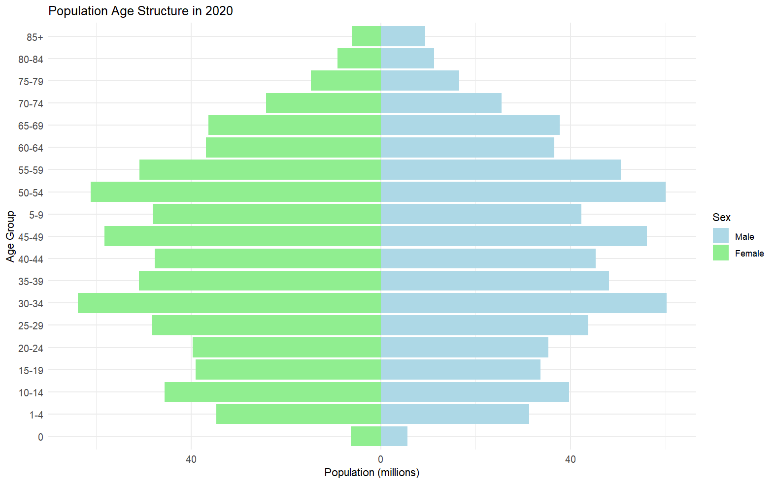 Over the past 70 years, China’s demographic structure was reshaped by rising purchasing power, the one-child policy, and rapid urbanization. The structure shifted from a population pyramid to an “olive” shape, characterized by a substantial middle-aged segment and smaller proportions at the young and old ends, indicative of an aging society (Figure 6.2). Amid this demographic shift and changing family structures, residents’ living habits, consumption behaviors, and social characteristics have changed in generation-specific ways, beyond traditional influences of family status and income. For example, (i) elderly households prioritize health care, medical services, and traditional products, (ii) three-generation households exhibit more diverse consumption patterns, and (iii) the DINK (Double Income, No Kids) families (the number of which has been rapidly growing) spend more on lifestyle and leisure activities.