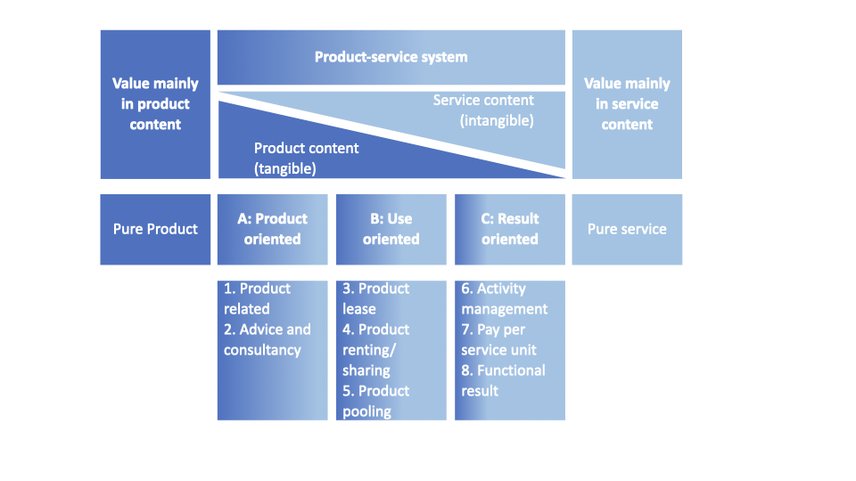 The use-oriented and result-oriented services are the most promising ones ecologically because the provider is in general incentivized to reduce the cost of the services by reducing resource use and prolonging the life of the product and its components.