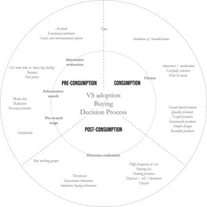 VS manifests in deliberate practices of restricting material consumption and is thus intrinsically linked to consumer behavior. Consequently, we can identify VS-related practices across all stages of consumer behavior (Figure 15.1). In the pre-purchase stage, for example, individuals may engage in a more intentional and thoughtful process of identifying needs and evaluating product options, while carefully choosing the items to buy. During the purchase stage, simplifiers may avoid branded items and instead prefer second-hand products, long-lasting items, and sustainable products. In the post-consumption stage, sharing practices or practices of reusing and recycling may be adopted (see Circular Economy and Society, Sharing Economy, Repair).